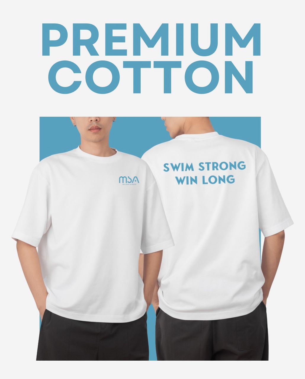 Stay stylish and comfortable with the MSA Swim Academy oversized round neck T-shirt — where performance meets fashion. Made from premium 220GSM space cotton, this breathable and soft tee features a clean minimalist design, perfect for both athletes and supporters.